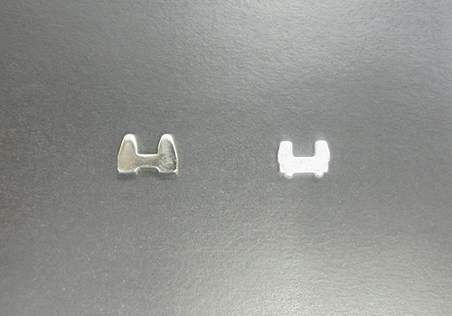 切断面の成型を行い、接点部として活用されている。写真はニッケル・銀メッキ品。